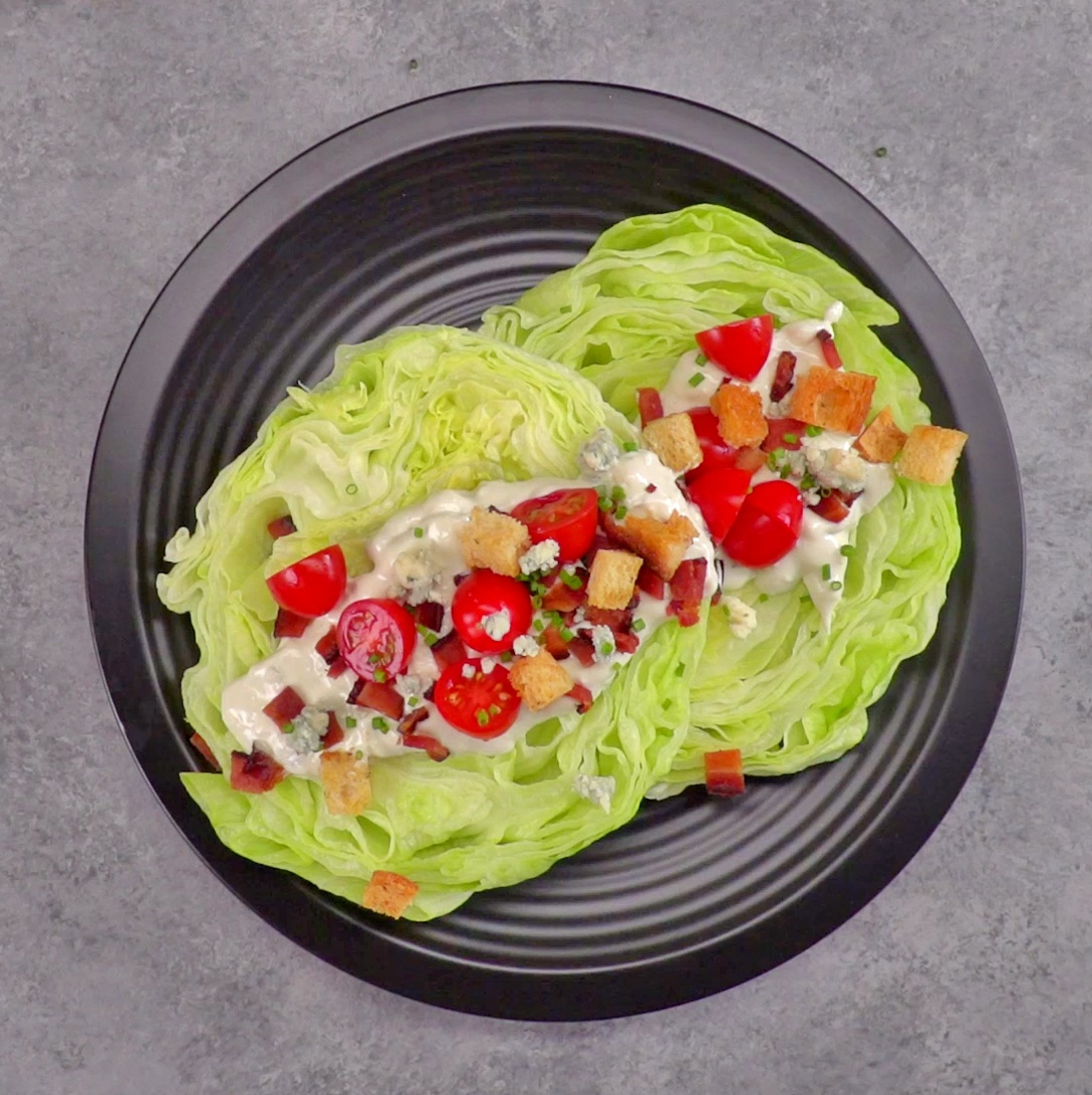 Cut lettuce in half through stem end. Bacon hard boiled eggs chicken tomatoes blue cheese avocado green onion and dressing. Simple iceberg lettuce salad recipes gulf shrimp iceberg lettuce wedge salad cooking lsl black pepper crumbled blue cheese black pepper chopped parsley and 15 more.